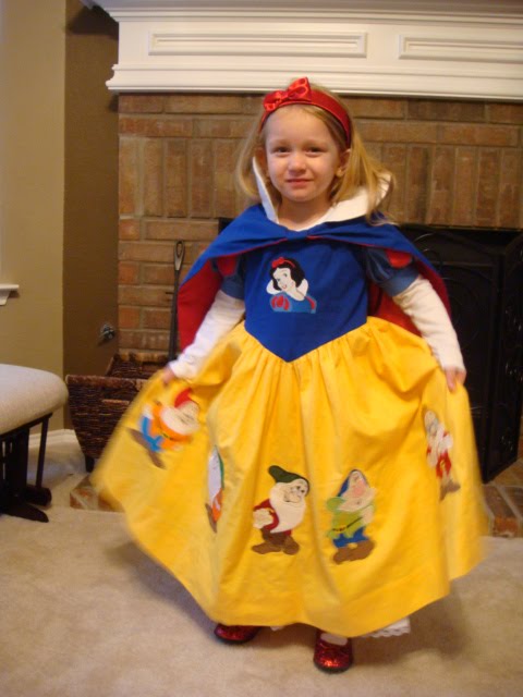 Well I must say that the dress turned out AWESOME!!!! I think that mom did an incredible job. Not only do I think she was the cutest Snow White on Halloween, I think she will be the cutest Snow White at Disney World in May. It was a lot of blood, sweat, and tears but the dress could not have turned out better. Thanks mom for all you do for the girls! Your the best ninnie in the world!
